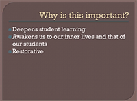 This webinar explores how contemplative practices can deepen feminist and critical race pedagogies in Women’s Studies, Ethnic Studies, and other courses about diversity, power, and oppression. Mindfulness can help students both understand their reactions in class discussions and help them become more intentional about them. But they may also evoke for students complex responses to their own experiences of oppression. As teachers, we have a responsibility to help students make sense of those responses.